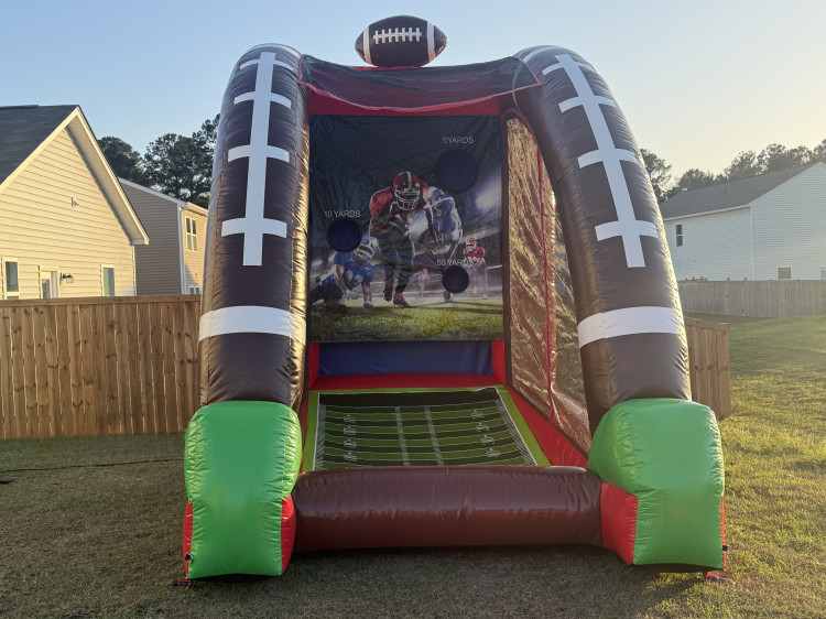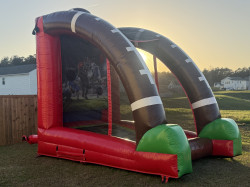 Get ready to unleash your inner basketball champion with our Football Sports Challenge inflatable game! This action-packed inflatable is perfect for sports enthusiasts of all ages. Step onto the court and test your skills as you aim to shoot hoops and score points against your opponents. With multiple hoops and a high energy setting, this inflatable game will keep you entertained for hours. Challenge your friends to a friendly competition or practice your shooting skills solo. The spacious and colorful design of the Football Sports Challenge is sure to grab everyone's attention and create a fun atmosphere at any event. Whether you're hosting a birthday party, a school carnival, a corporate event, or a community gathering, this inflatable game is a must-have addition. It guarantees endless fun and excitement for players and spectators alike. Constructed with top-quality materials and maintained to the highest safety standards, you can enjoy a worry-free experience while indulging in some serious basketball action. Our professional staff will deliver, set up, and ensure the proper functioning of the Football Sports Challenge, so all you have to do is focus on shooting those hoops! Don't miss out on the chance to bring this thrilling inflatable game to your next event. Rent our Football Sports Challenge today and let the games begin!