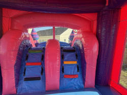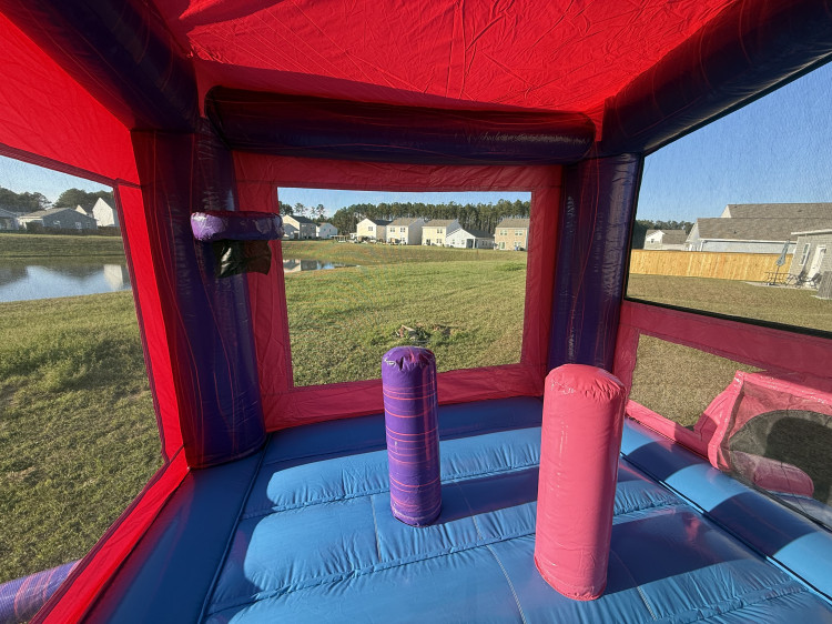 Step into a storybook celebration with the Pink Enchanted Dual Lane Combo (WET/DRY), a castle-themed inflatable made to delight kids and bring a splash of magic to any event. This combo blends a roomy bounce area with a dual-lane slide that can be used wet or dry, plus an inflated splash pool at the base. Bright pink and purple turrets, mesh windows for airflow and visibility, and an easy step entrance make it both eye-catching and practical. With built-in safety features like soft, inflated walls and clear mesh panels so adults can keep watch, it’s ideal for backyard parties, school events, church gatherings, or birthday celebrations. The versatile wet-or-dry slide option extends seasonal use, and the generous bounce space inside gives plenty of room for jumping, games, and active fun. Reliable, charming, and designed for safe, high-energy play, this combo creates memorable moments for kids and peace of mind for hosts.