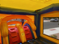 The Melting Arctic Dual Lane Combo is a must have for any event! This combo can be rented wet or dry, making if the perfect addition to any get-together any time of year. A basketball hoop is included for additional fun. This unit is intended for ages 3 & up. This unit measures 31 feet long, 13 feet wide and 15 feet high.