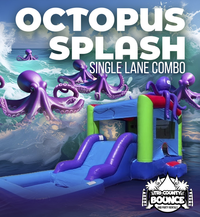 Dive into fun with the Octopus Splash Single Lane Combo—a vibrant, engaging rental piece that transforms any event into an exciting playground. With its playful design inspired by a friendly octopus, this unique setup delivers a mix of challenge and delight, inviting everyone to race, splash, and create memorable moments. Enjoy the thrill of a single lane competition that makes every bounce an adventure!