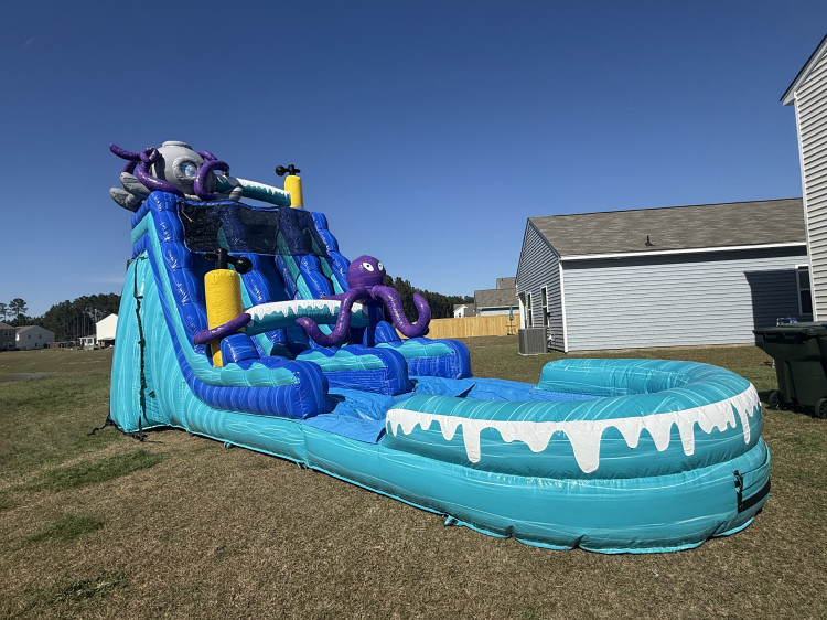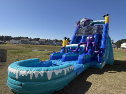 Make a splash at your next event with the 22ft Deep Sea Dual Lane Slide. This towering, eye-catching slide is decorated with colorful deep-sea creatures and offers two parallel lanes for side-by-side racing or shared fun. Standing at approximately 20 feet tall and 38 feet long, it’s one of the largest attractions available and delivers big thrills and memorable photos. Designed for outdoor parties, school events, and summer gatherings, it provides an exciting, competitive ride that keeps guests entertained and coming back for more.