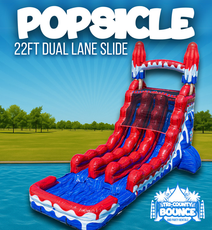 Chair22 Ft. Popsicle Dual Lane Slide (WET/DRY):Chair1Dropdown03074439_30772210000 Simple, sturdy chairs to seat guests comfortably at your event. Ideal for ceremonies, receptions, meetings, or parties where extra seating is needed, these chairs are easy to set up and arrange to suit any layout. They provide dependable support and a clean, unobtrusive look that complements a wide range of décor and event styles. Perfect for filling out table settings or creating rows of seating, these chairs make hosting large or small gatherings easier and more organized.Cornhole22 Ft. Popsicle Dual Lane Slide (WET/DRY):Cornhole1Dropdown03074439_28169210000 Cornhole is a classic bean bag toss game that's perfect for any gathering. This rental includes sturdy boards with a hole and soft bean bags to toss, sparking friendly competition at outdoor parties, tailgates, or family reunions.Giant Connect Four22 Ft. Popsicle Dual Lane Slide (WET/DRY):Giant Connect Four1Dropdown03074439_28169190000 Giant Connect Four is a great additional to any party or event, to include: birthday parties, barbecue's, festival's, church events and more